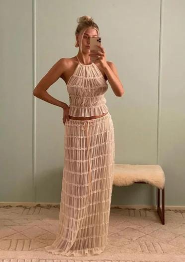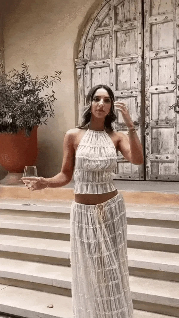 Die premium Materialen kombiniert mit einer luftigen Passform machen dieses Set zum perfekten Begleiter an warmen Sommertagen & romantischen Stranddinnern.